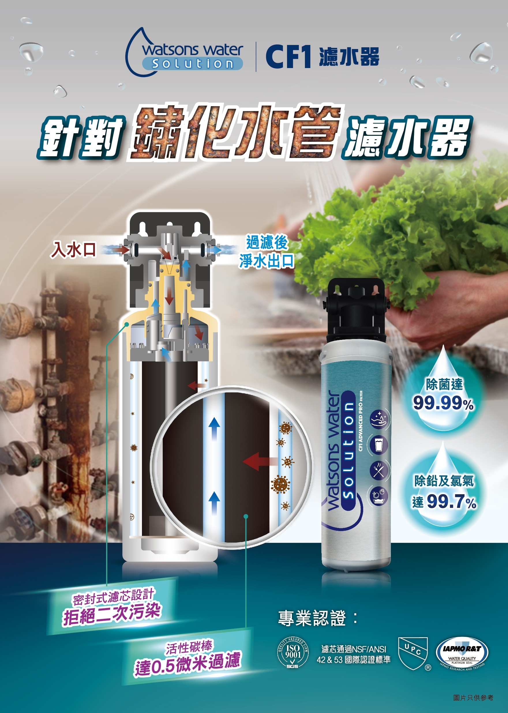 Customers who purchase the Watsons Water Solution CF1 water filter can enjoy 3 years maintenance service. Customers need to register on the designated website (details can be found on the Watsons Water Solution website) and keep the original receipt as proof of purchase. The lifetime maintenance service includes: