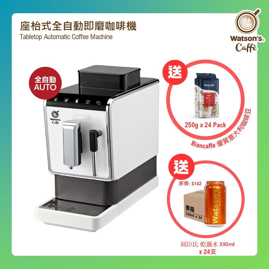 【Xmas Offer】Watson's Caffè Table Top Automatic Coffee Machine + 3kg Italy Biancaffè Intenso Coffee Bean
